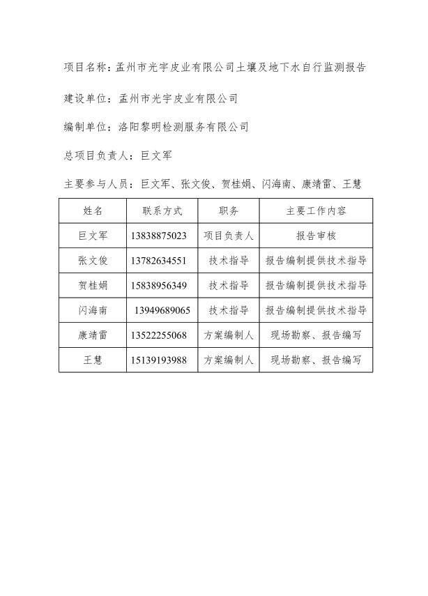 孟州市光宇皮業有限公司土壤及地下水自行監測報告